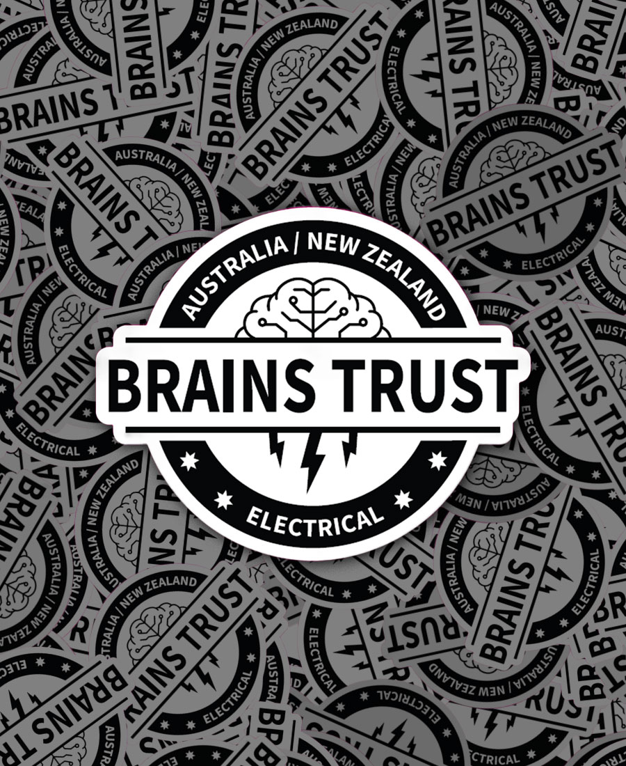 Pack of 4 Brains Trust Stickers – Black and white 85 x 70mm
