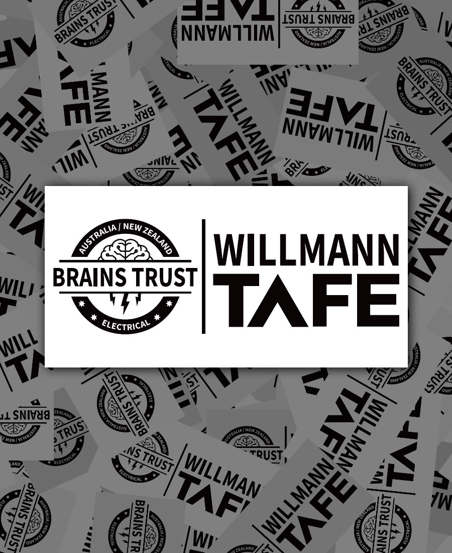 Pack of 4 Brains Trust Willman Tafe stickers – 100 x 50 mm Black and white